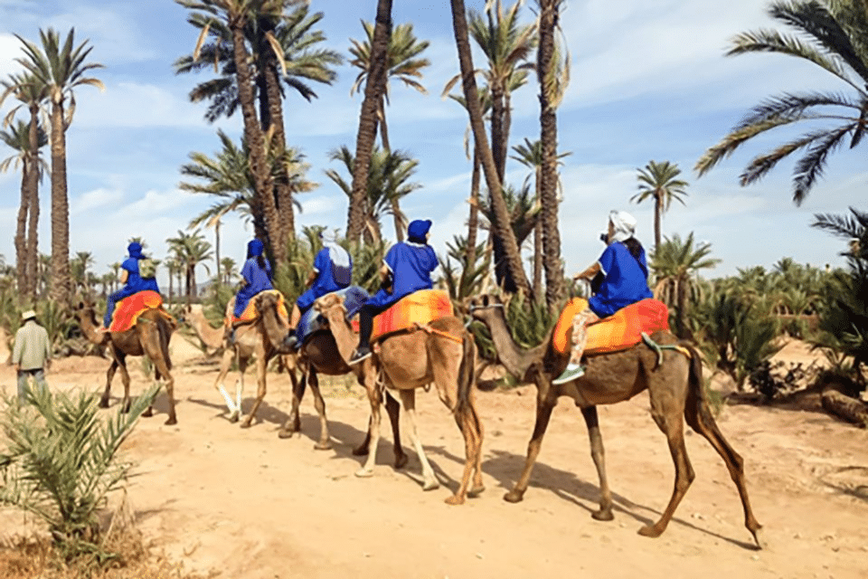 Explore the famous Marrakech Palm Grove in a unique way with a camel ride with Best Places Morocco. Enjoy a scenic one-hour camel ride, discovering the lush green landscapes and palm groves of this Moroccan oasis.